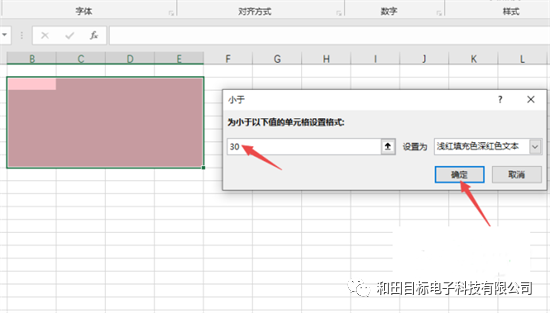 4.之后就可以看到该区域中输入一些数值了,可以看到小于30的数值便会被设置的条件格式突出显现出来了。