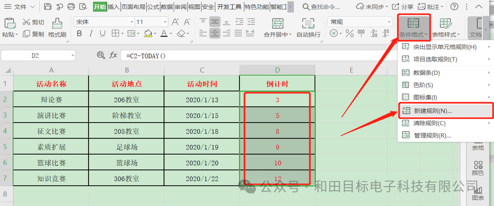选中(D2,D8)单元格区域,点击【条件格式】——【新建规则】
