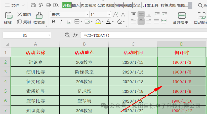 此时,在Excel中设置倒计时就做好啦,每天打开表格,数据都会自动的进行更新。如图所示: