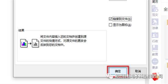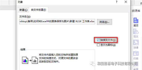 7.可以将【链接到文件】给点上,如果你只想要图表,那就不用点;