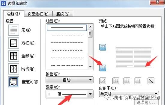 3、点击边框选项卡,点选上边框和下边框后设置边框样式。