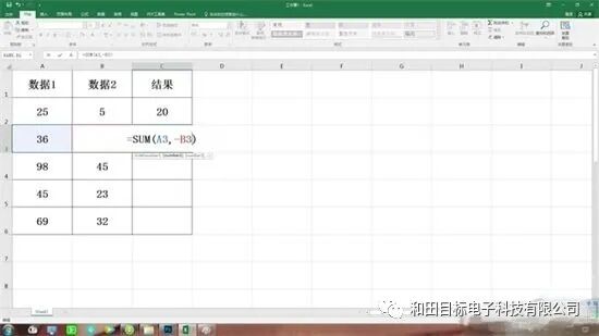 3.在C3单元格中,输入“=SUM(A3,-B3)”,同样实现两数的相减;