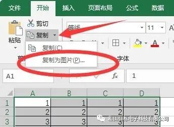 2.然后在“开始”工具栏中找到“复制”按钮,点击右侧的下拉框,即可选择“复制为图片”;