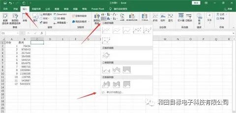 2、单击插入选项卡。它位于Excel窗口顶部的绿色功能区的左侧。这将打开绿色功能区下方的“插入”工具栏单击“折线图”图标。在选项的“图表”组中,该框上画有几条线。将出现一个下拉菜单。选择一种图形样式。将鼠标悬停在下拉菜单中的折线图模板上,即可查看数据的外观。您应该在Excel窗口的中间看到一个图形窗口弹出。单击图形样式。确定模板后,单击该模板将在Excel窗口的中间创建线形图。
