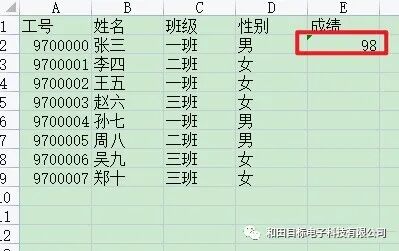 8.确定后,成绩单元格E2自动带出对应成绩,如图;