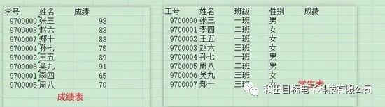 1.如图我们有两张表,一张成绩表,一张学生信息表。我们想根据学号把成绩匹配到学生表中;