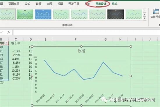 5.就可以生成折线图了,制作完成后,可以在图表设计中,根据需要调整折线图的样式等。