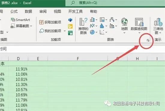 3.也可以在图表功能区中,点击右下角的展开图标;