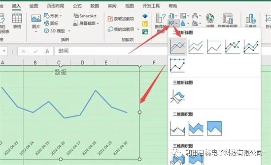 2.可以直接在图表功能区中,点击折线图图标之后,选择第一个折线图样式即可生成折线图;