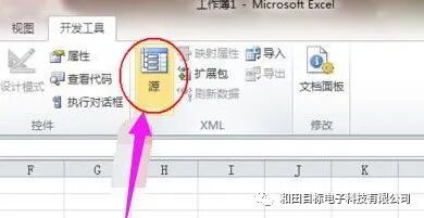 3.这时候我们在Excel菜单选项中就可以看到开发工具了,点击之后选择源;