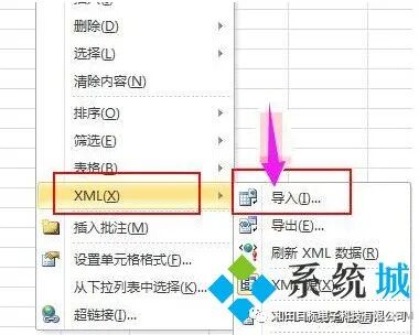 8.右击该单元格,选择xml,选择导入就可以打开xml文件。