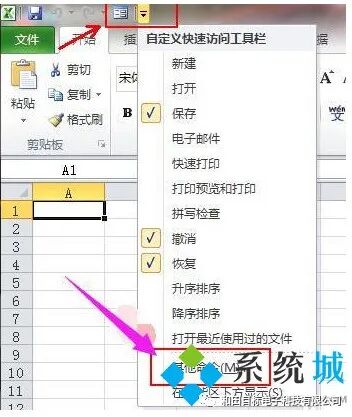 1.以excel软件为例,打开excel,点击界面上方的下拉黑三角,弹出菜单中选择其他命令;