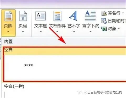3、在下拉内置菜单中选择第一个【空白】,单击可在页脚处弹出一个输入框。
