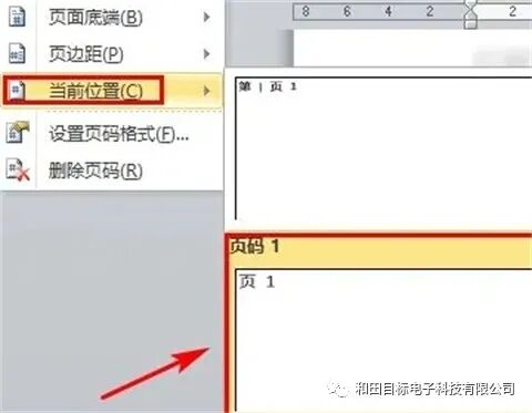5、在下拉菜单中选择当前位置,右侧弹出各种页码显示样式,单击选择其中一种,这里选择“页码1”。