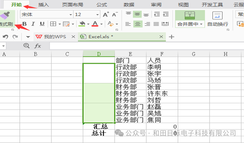 我们选中合并后的单元格,点击【开始】,再点击【格式刷】: