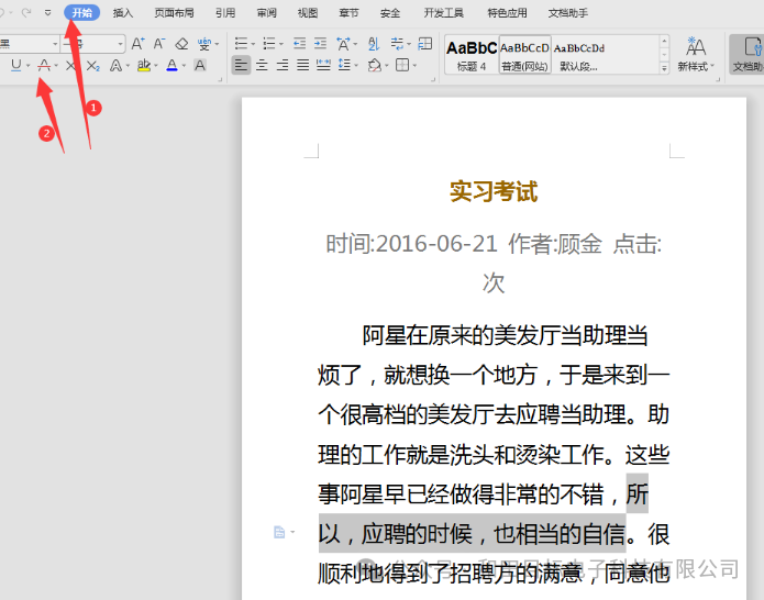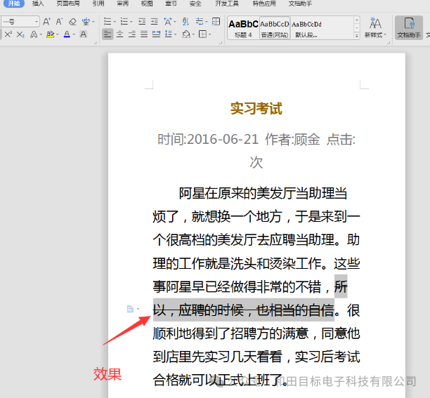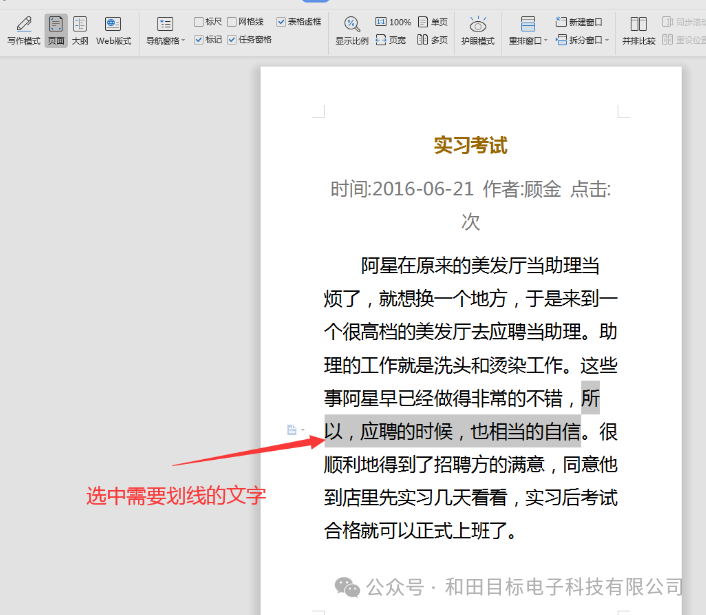 第二步:在打开的文档中找出并选中需要中间划线的文字内容: