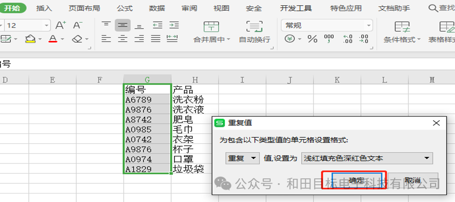 之后我们返回到表格中,就可以看到重复值变成了红色,就可以对重复值进行修改了,这样就保证了数字的唯一性,如下图所示: