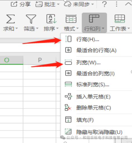 行和列有下拉菜单,我们可以根据实际情况选择行高或者列宽:
