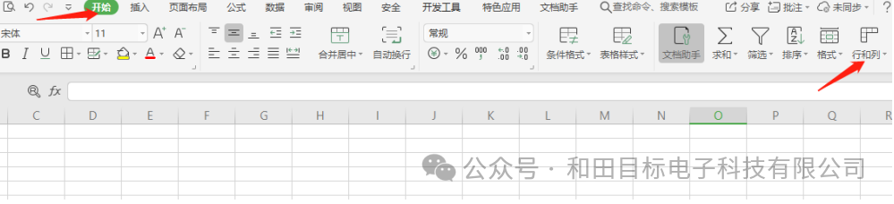 之后我们选择工具栏中的【开始】,点击【行和列】,如下图: