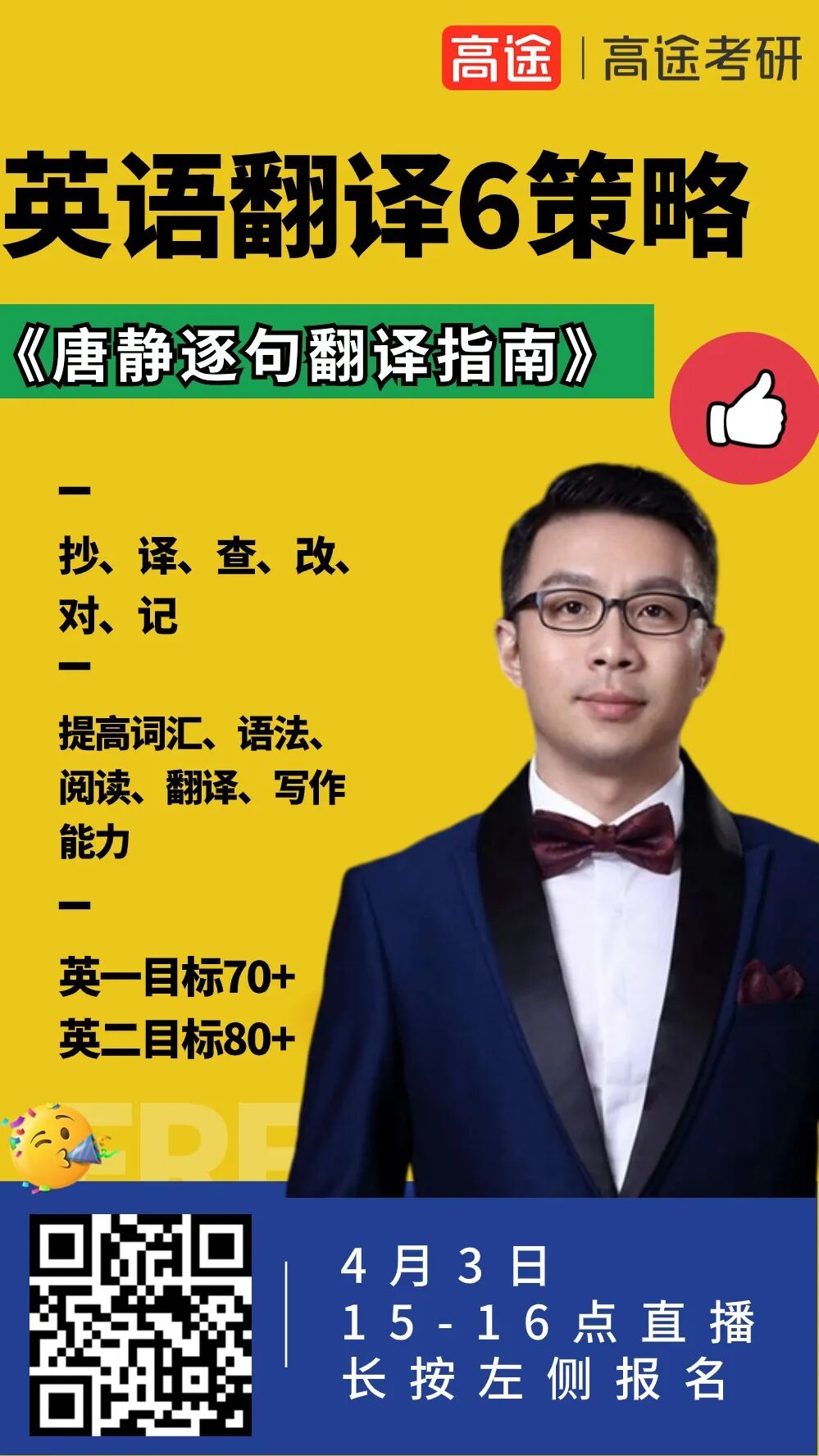 内容:唐静老师——逐句翻译,多面提高考研英语的最佳手段