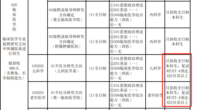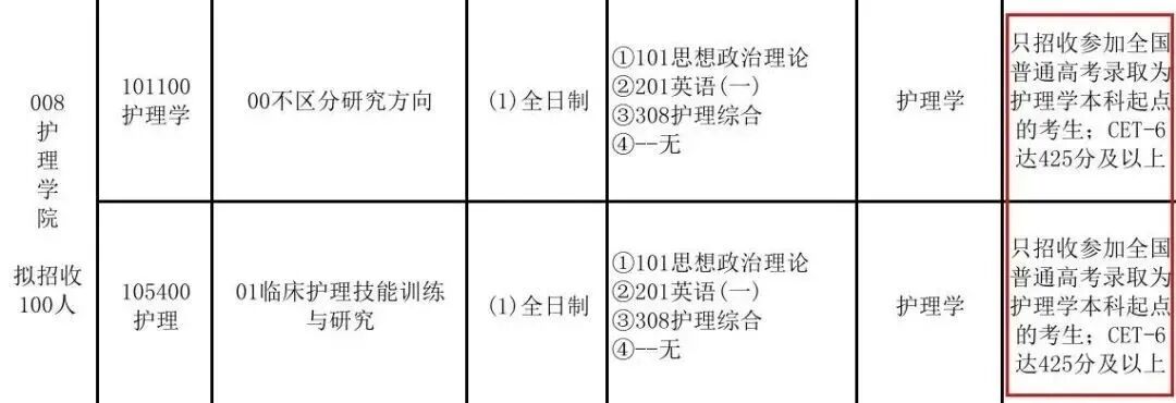 2022年研究生招生简章中,护理学和护理专业要求考生六级达到425分及以上,儿科学和麻醉学等专业要求考生四级达到425分及以上。