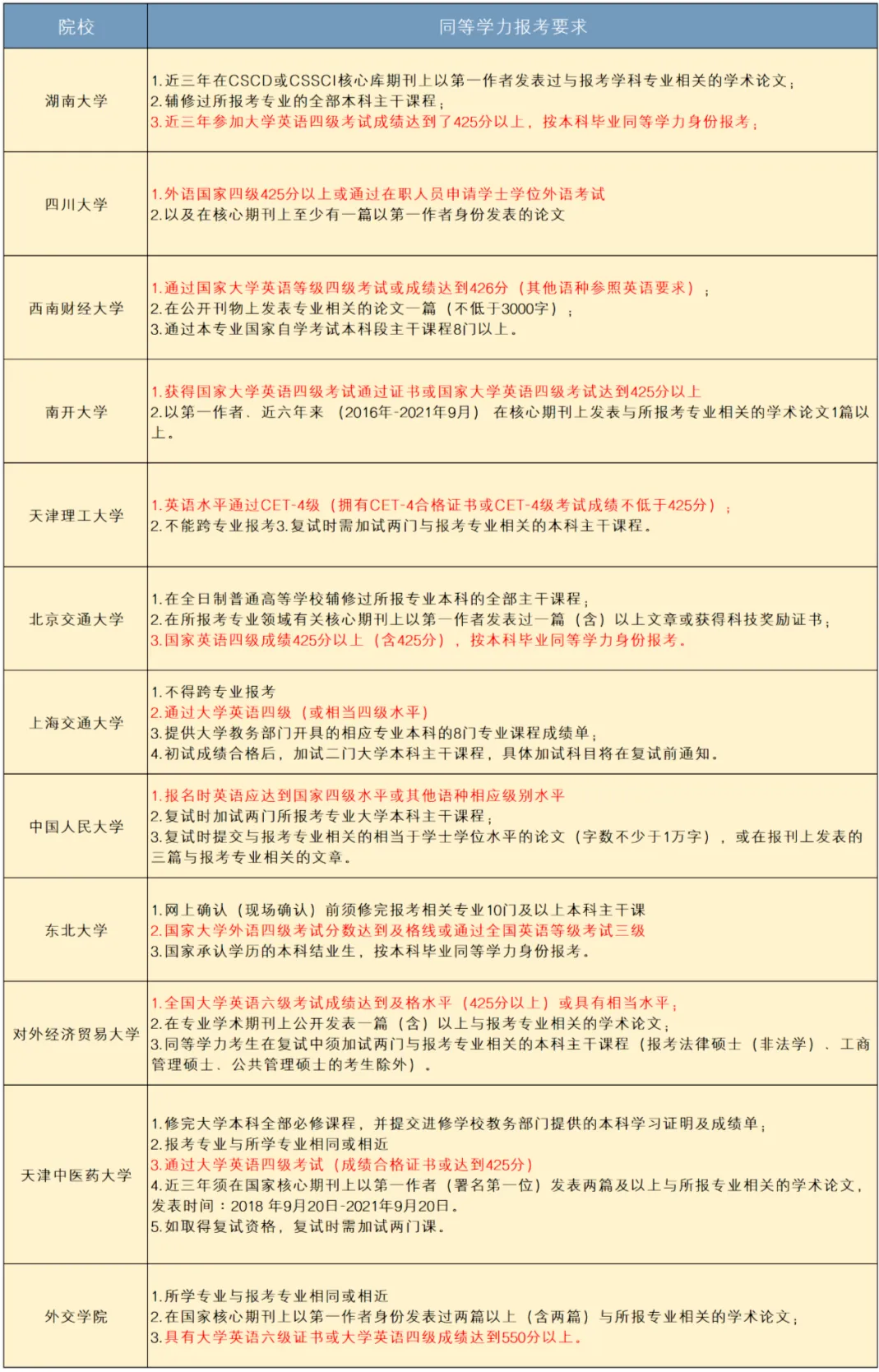 不完全整理,同等学力报考也有过四六级这一要求。这些学校英语四六级没过不允许报考👇