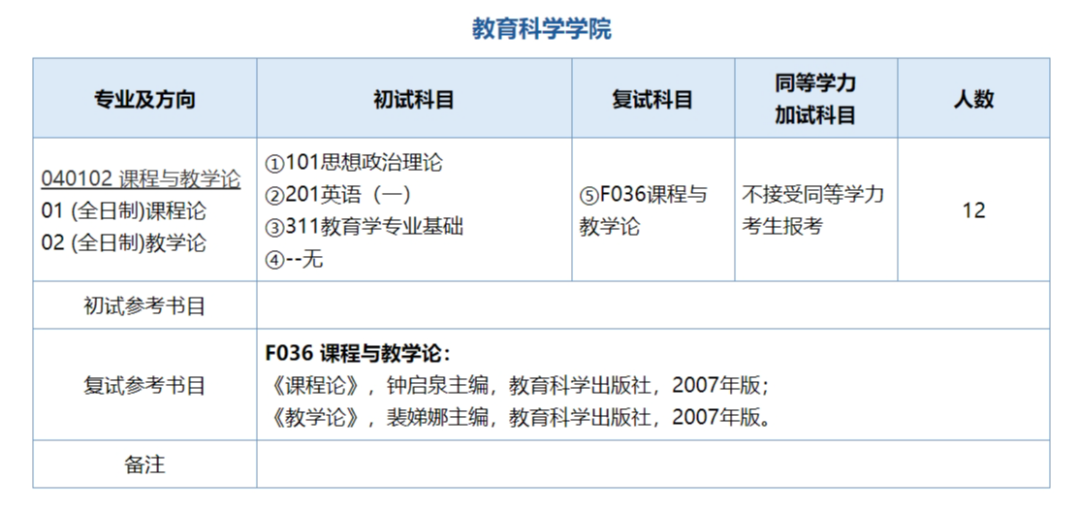 陕西师范大学在2024年的招生目录里明确提出课程与教学论专业不接受同等学力报考。