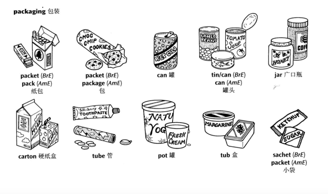 140组英语同义词 | 包装:Packet,Pack,Package,Can,Jar,Tin,Carton,Tube,Pot