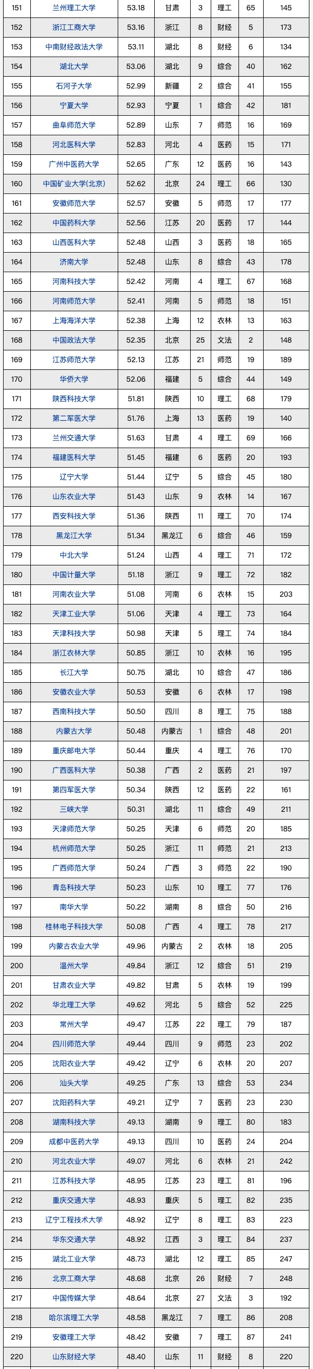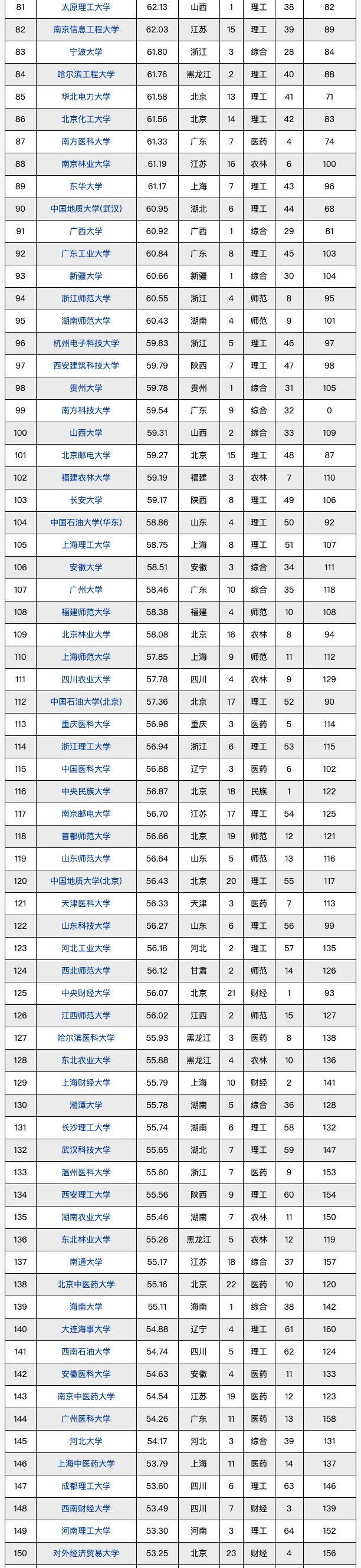 🔔从类型来看:理工类院校依然强势,占据一半数量,综合类有19所,师范、农林、文法、医药类较为乏力;