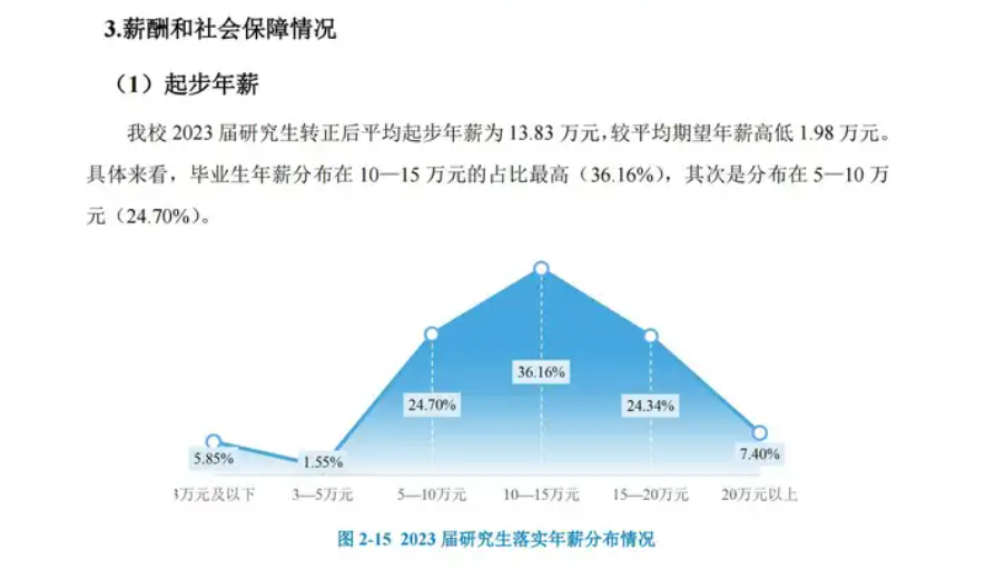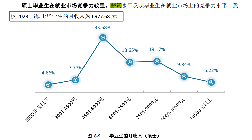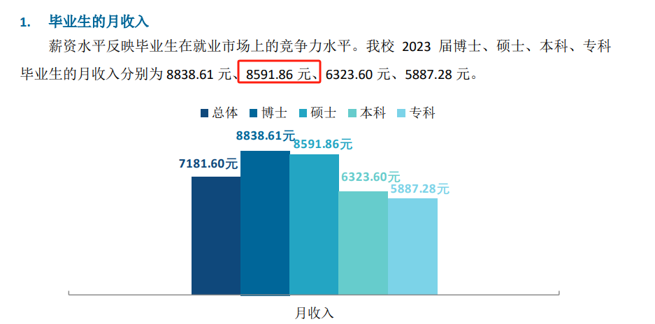 其最新的毕业生就业质量报告中显示,该校2023届硕士毕业生平均月收入为8591.86元