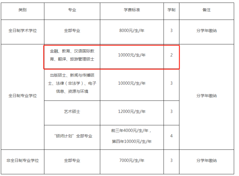 2年全日制专硕:金融、教育、汉语国际教育、翻译、旅游管理的全日制专业型硕士研究生。