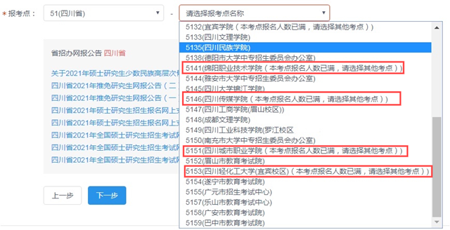 如果要选的报考点有人数限制,报满了,这个时候尽量不要犹豫,快速下拉报考点,浏览一下有空缺的地点,更换报考点。
