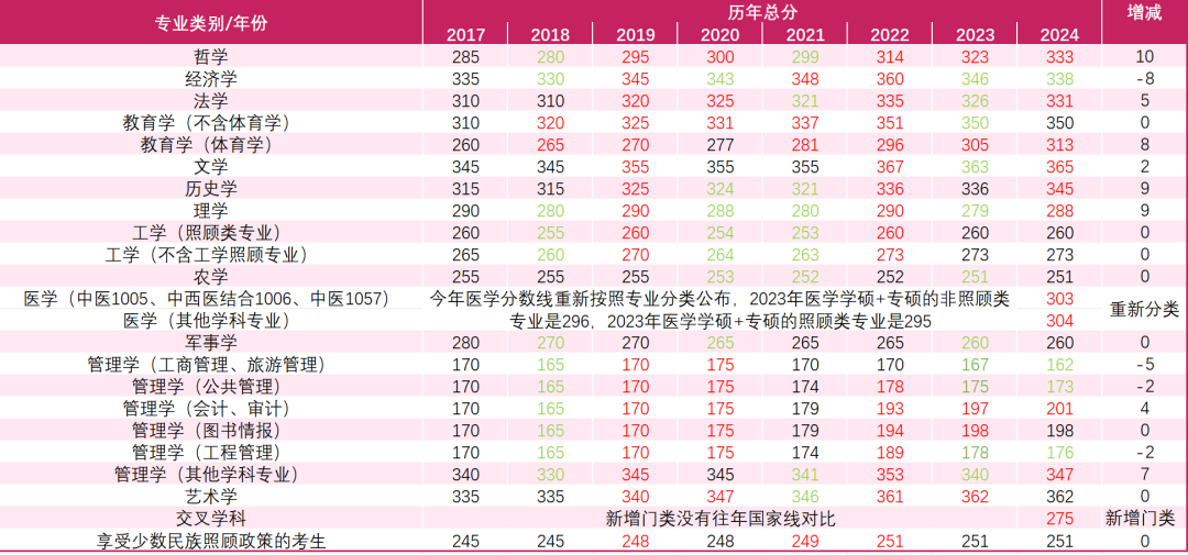 🔴哲学涨10、法学涨5、体育涨8、文学涨2、历史学涨9、理学涨9、医学涨8、军事涨10、管理学学硕涨7、交叉学科275!