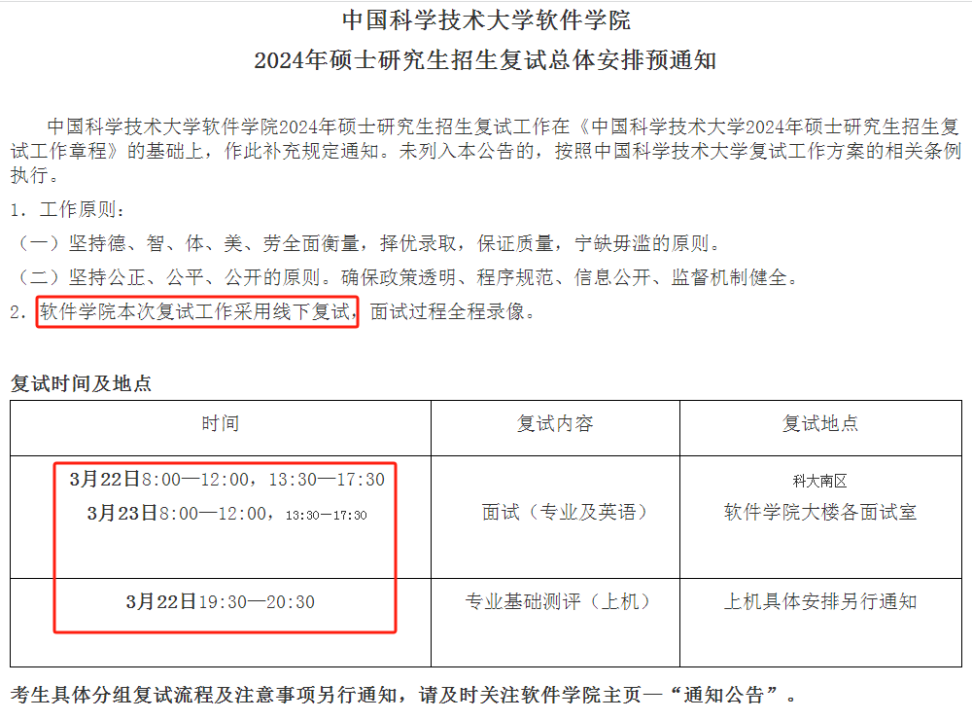 在国家线公布后不久就有院校宣布下周拟进行复试,最快的是中国科学技术大学软件学院,在3月22日至23日进行复试,也就是在下周就进行复试了!