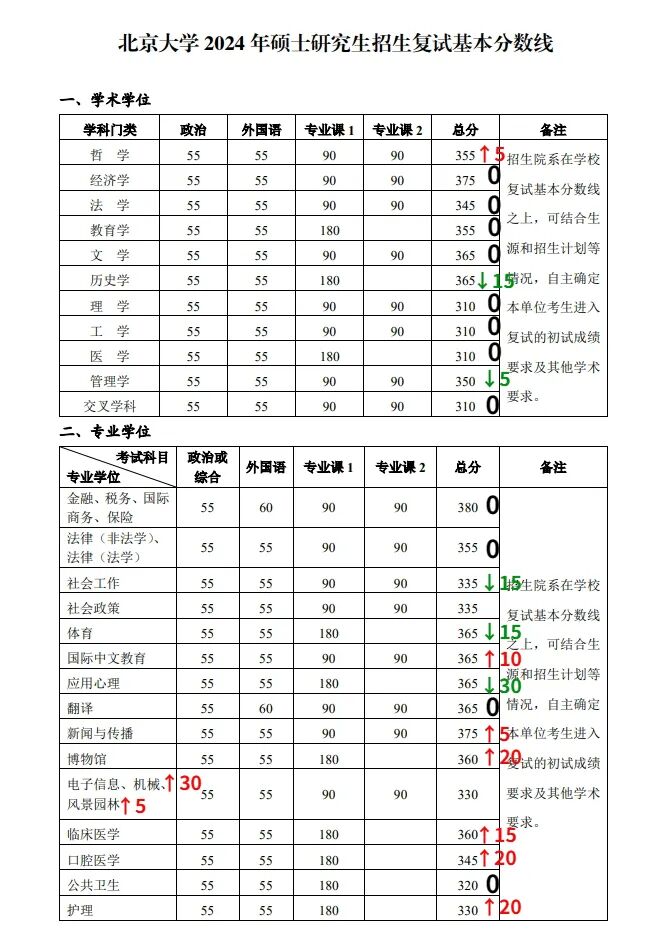 北大今年学硕校线相较往年比较稳定,基本上没有什么变动;但专硕分数上涨的居多,尤其是电子信息上涨30分!