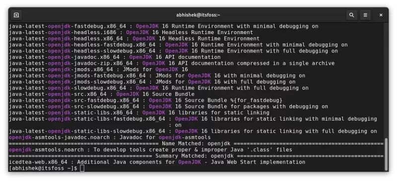 还有一件事。即使是 OpenJDK 也有几个版本可供选择。在写这篇文章的时候,Fedora 34 有 OpenJDK 1.8、OpenJDK 11 和 OpenJDK 16 可用。