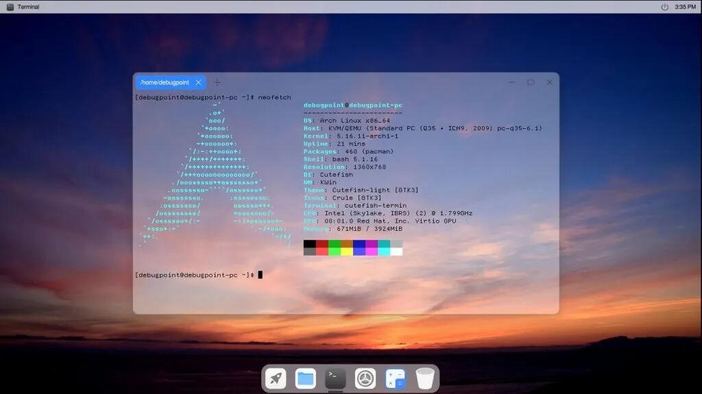 Cutefish Desktop in Arch Linux
