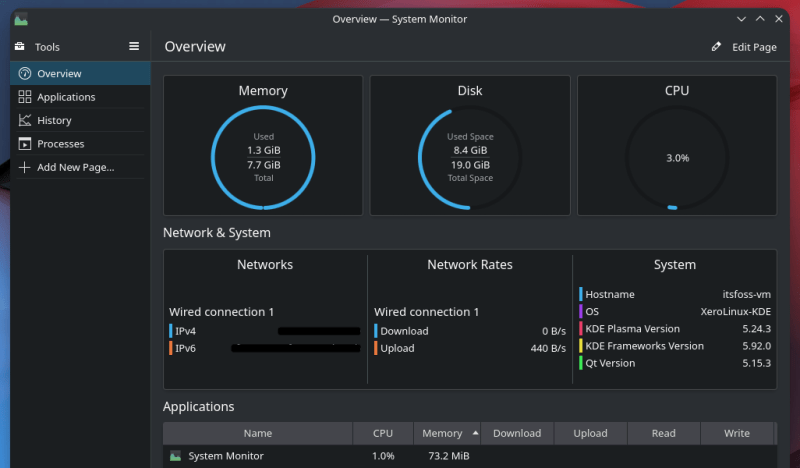 XeroLinux 的开箱即用的体验令人印象深刻。桌面的整体外观和感觉包括许多新的功能补充,如显示 CPU 使用情况、网络速度等的小工具。