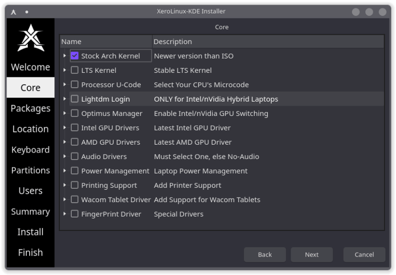 虽然安装体验与流行的 Linux 发行版相似,但你可以在安装时选择图形驱动程序、特定的 Linux 内核和工具。