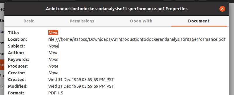正如你在上面的截图中注意到的,PDF 文件包含了很多关于其来源的信息。