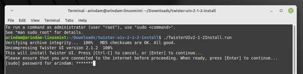 该脚本需要管理员密码,所以在要求时就提供这个密码。在你开始安装之前,请确保你有稳定的网络连接,以便随时下载其他软件包。