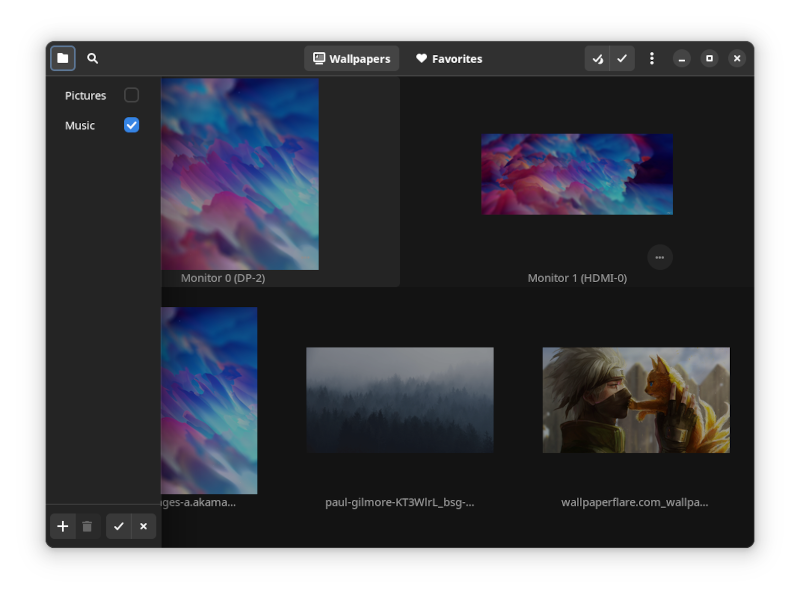 HydraPaper 是一个使用 Python 3 和 GTK 构建的相当有用的壁纸管理器。它可以让你为不同的显示器选择单独的墙纸。