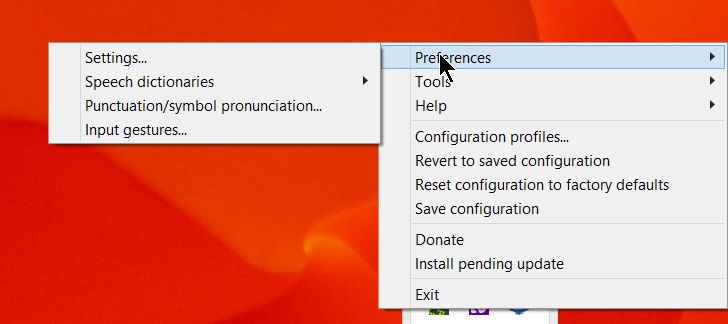 Image of NVDA menu