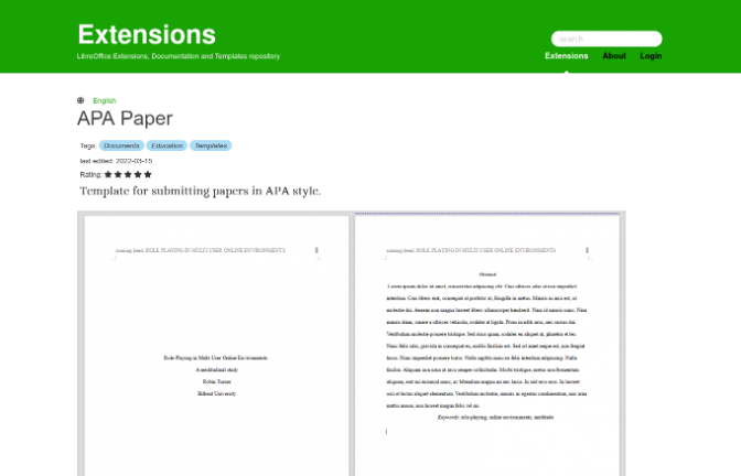 如果你需要编写文档,请浏览 LibreOffice 模板以找到适合你的模板。使用模板意味着你可以花费更少的时间来设置文档以使其具有某种外观,并且可以更快地工作。在支持你的工作的 LibreOffice 扩展和模板库中查找其他文档模板。