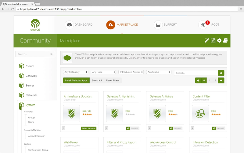 ClearOS🔗 www.clearos.com 是基于 Fedora 的发行版,专为服务器环境量身定制,或帮助你在 HP 支持的家庭网络上运行 IT 相关任务和流式传输音乐/视频。你必须根据自己的要求同时购买家庭版/企业版。