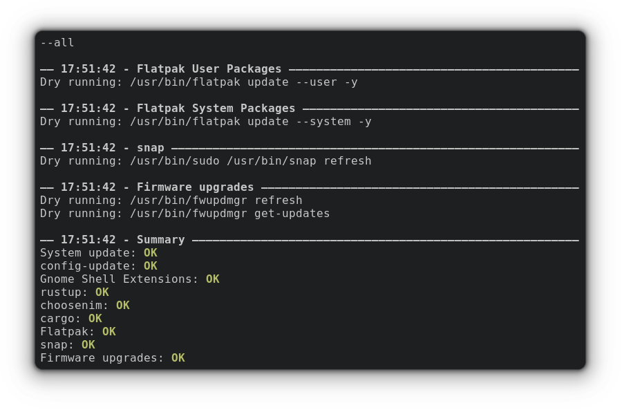 你只需使用带有 -n 选项的 topgrade 命令,它就会生成过期软件包的摘要。