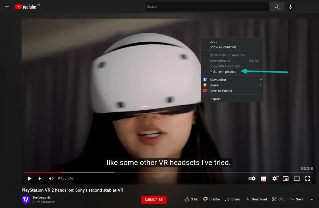 让我通过一个例子来说明这一点。在 Brave 中播放 YouTube 视频。现在右键单击视频。