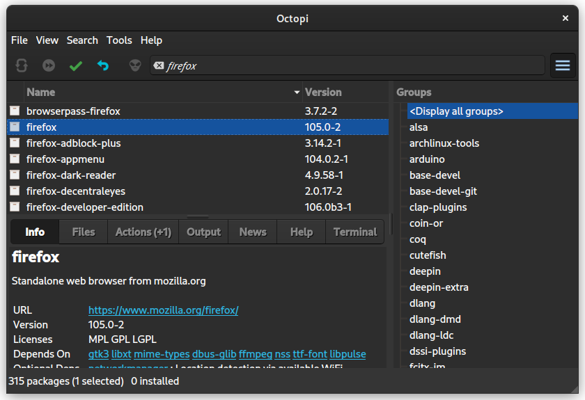 可以认为它是 tkPacman 的更好看的表亲。它使用 Qt5 和 Alpm,还支持 Appstream 和 AUR(通过 yay)。