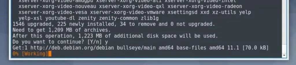 现在,通过运行下面的命令开始升级过程。基本安装的下载大小约为 1.2GB。这可能会根据你的系统配置而有所不同。