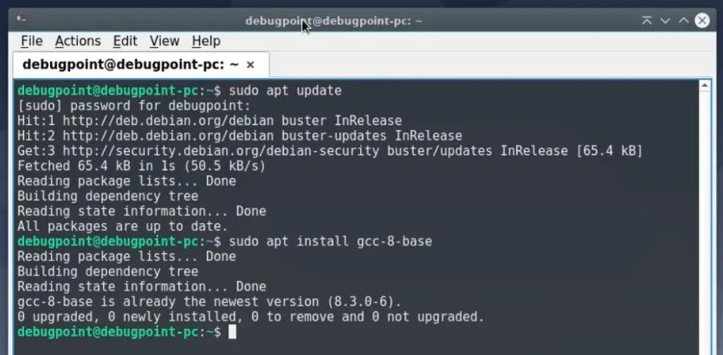 使用下面的命令安装 gcc-8-base 包。这是必须的,因为在历史上曾出现过升级失败的情况,这是因为下面的软件包中包含了某些依赖。